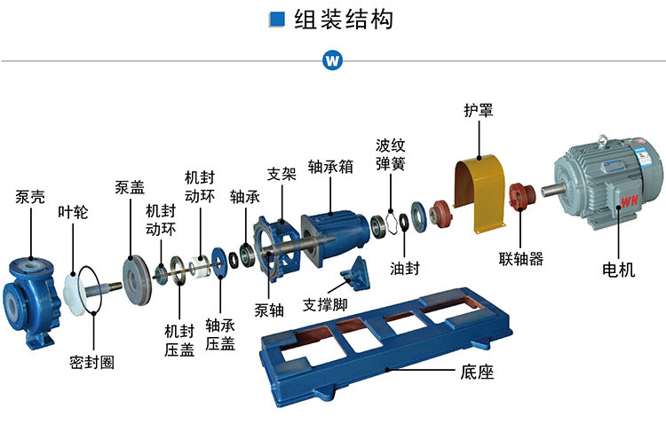 IHF氟塑料離心泵組裝結構圖。